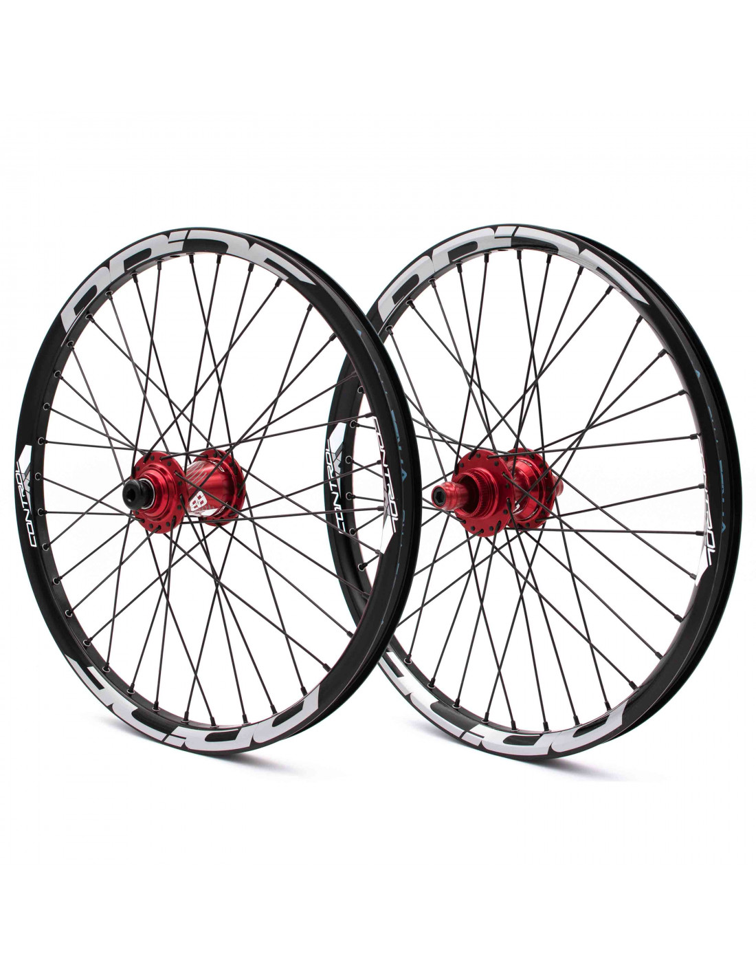 Les roues Pride Racing sont fabriquées en aluminium 6061-T6 et sont spécialement conçues pour les Bmx Race équipés de roues 20" (406). Une association de pièces Pride Racing avec les jantes et moyeux Control. Grâce à leur traitement thermique T6, ces jantes garantissent un très bon rendement avec leur légèreté et efficacité. Les moyeux Control viennent compléter cette paire de roues. Ils possèdent 6 cliquets microdentés qui permettent au système d'engagement de développer 180 points. Cette paire de roues vous assure une relance pratiquement directe, que ce soit en sortie de virage ou au départ d’une course, vous avez toutes vos chances de finir devant avec cette paire de roues Pride Racing Control.